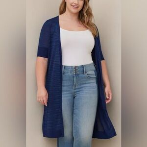 Torrid Space-Dye Duster V-Neck Button-Front Sweater Blue