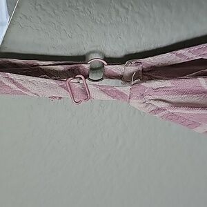 Lavender and white striped top. Buttons down the front. Adjustable straps. Small mark in the back, see close up. I wouldn't consider this stretchy. Minimally sheer. Great for layering or wearing alone. Brunch, festival, sweet, twee, romantic, casual, date, weekend