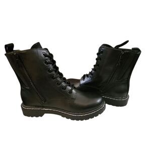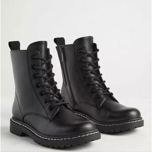 These faux leather boots will help you combat the day in style, as you enjoy the lace-up front, side zipper, and lug sole.