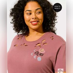 Torrid Stitch Skull Relaxed Fit Heritage Jersey Destructed Tunic Tee