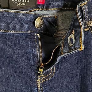 *** The last two pictures are of the crotch area. I purchased these as new w/o tags, so I don't know if this is distressed or what but wanted to show before purchase. You can't see from the other pictures. I'm hoping this is just a regular pair of Torrid jeans & that's how they are supposed to look😊