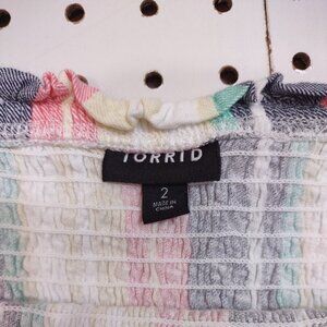 Strapless top in good condition with normal wear, style and colors great for spring and summer, fitted at bust and flowy bottom.