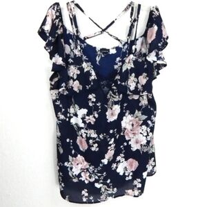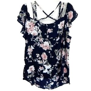 Item: Women's Black Floral Lace Inset Strappy Cold Shoulder Top