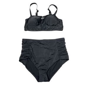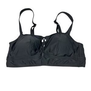 Torrid Strappy Lace Up Lattice High Rise Bikini Swimsuit Black Top 0, Bottom 2X