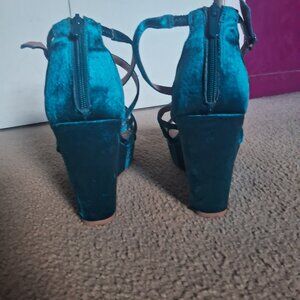 Torrid Strappy Platform Wedge, teal, size 12 WW