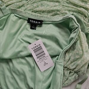New with tags Torrid shirred mesh cami cropped, color is Hemlock. Very cute and lightweight. Straps are adjustable. Very stretchy.