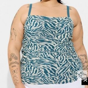 Description: Torrid Stretch Mesh Cropped Shirred Cami Zebra White
