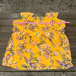 Torrid Stretch Mesh Square Neck Shirred Peplum Cherish Floral Mineral Yellow