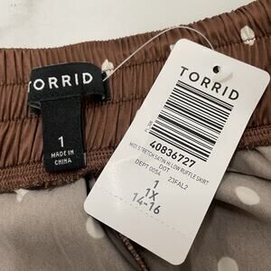 Torrid Stretch Satin Hi-Low Ruffle Skirt Size 1/1X/14-16 Brown Polka Dot NEW