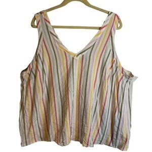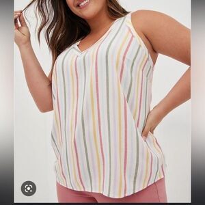 Torrid Stripe Challis Tank Top Pleat Back Detailed V-Neck Size 3x 22/24