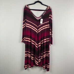 Torrid Stripe Jersey Mini Trapeze Dress V Neck Burgundy Size 2X