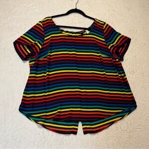 Torrid Striped Button Down Back Short Sleeves Top Size 2X Multicolor