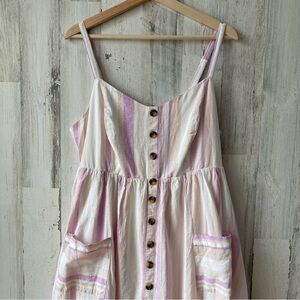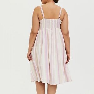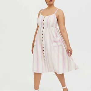 Torrid Pink Cream Striped Faux Button Front Midi Dress, Smocked Back, Adjustable Straps, Pockets!