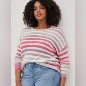 Torrid Striped Pullover Drop Shoulder Sweater White Pink Multi Size 2x