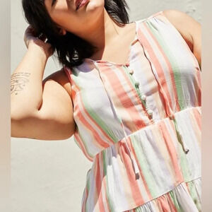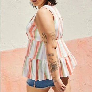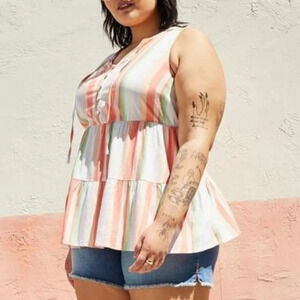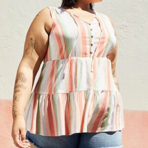 Torrid Striped Rayon Slub Button-Front Tiered Tank Women’s 00/M