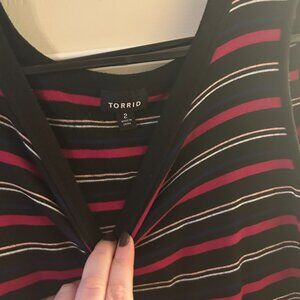 Torrid Striped Stretch Sleeveless Black Multi Colored Open Back Skater Dress 2X