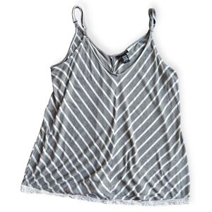 Torrid Striped Tank Top gently used size 1X. The tank has adjustable straps. The p2p is 20 with a length of 26. The material is 95% rayon and 5% spandex. Does come from a pet friendly home.