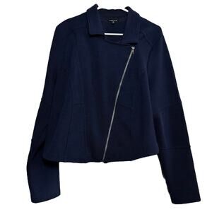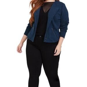 Torrid Studio Double Knit Moto Jacket Long Sleeve Side Zip Collared Navy Blue 2X