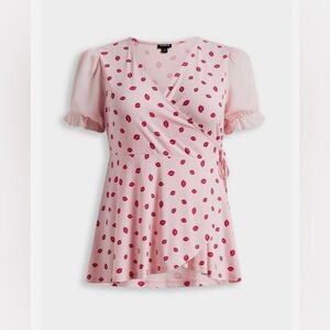 Torrid Studio Knit Chiffon Puff Sleeve Surplice Top Pink Size 1X Pink with Dark Pink Lips
