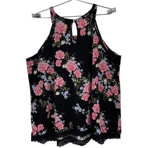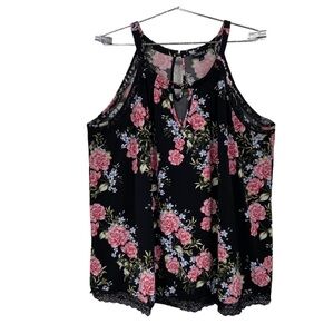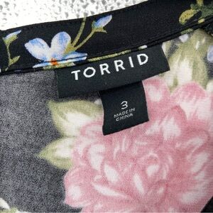 Torrid Studio Knit High Neck Keyhole Top Size 3 Plus Size Floral Black