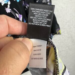Torrid Studio Knit Off-Shoulder Smocked Chiffon Sleeve Swing Top Black Floral 3X