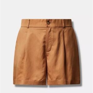 Torrid Studio Linen Tan Shorts Size 14 NWT Preppy Classic Pleated Elastic Back