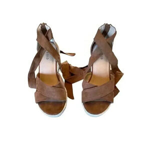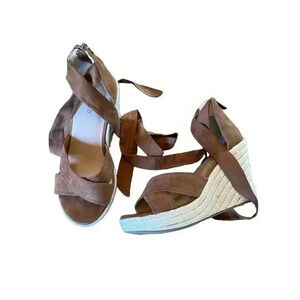 Torrid Suede Brown Lace-Up Espadrille Wedge Sandals Size 9WW