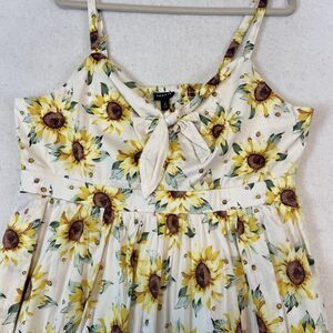Torrid Sunflower Dress Mini Tie Front Skater Sz 2X Pockets Smocked Summer