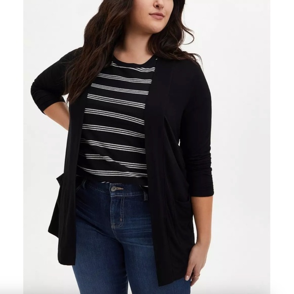 Torrid - Super Soft Cardigan Black Ruched Sleeve Open Front - 2X