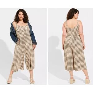 Torrid Super Soft Culotte Jumpsuit Tan Mindy motifs Wide Leg Crop Stretch Size L