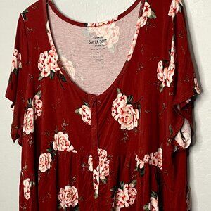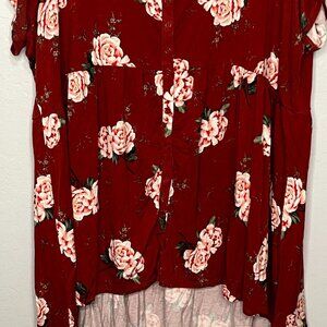 Torrid Super Soft Floral Button Front Short Sleeve Hi Low Top 4 4X 26