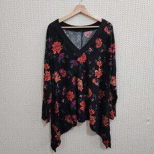 Torrid Super Soft Floral V-Neck Handkerchief Hem Tunic Sweater Plus Size 1X