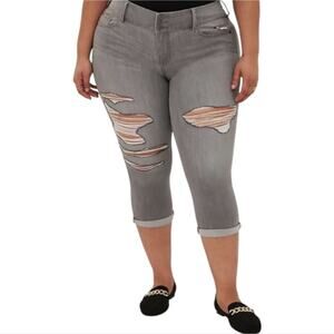 Torrid Super Soft Gray Distressed Rolled Hem Cropped Capri Jeans Plus Size 28