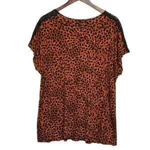 Torrid Super Soft Knit Blouse Women Size 1X Orange Animal Print Shoulder Lace