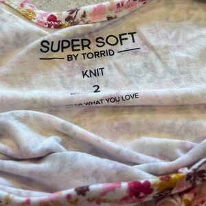 Torrid Super Soft Knit Floral Pink White V Neck Short Sleeve Top 2X 2 pullover