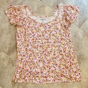 Look effortlessly stylish in this Torrid Super Soft Knit Floral Pink White V Neck Short Sleeve Top. The top boasts a beautiful floral pattern with flutter sleeves and a collarless design. It is made of Spandex and Rayon which makes it stretchable and breathable, perfect for all seasons.