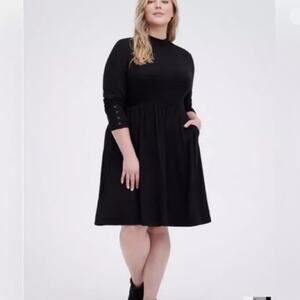 Style: super soft, knit, mock neck, slip on, stretch, stretchy, pockets, plus size, knee length, slip on, fit and flare, casual, business casual, office, career, professional, fun, closet staples, closet essential, everyday, errands, grunge, emo