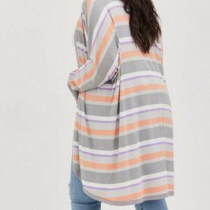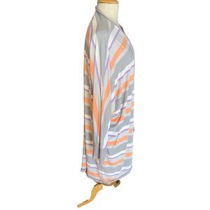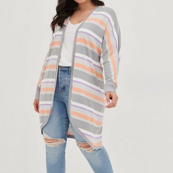 Torrid Super Soft Knit Pastel Multi-Striped Longline Rayon Knit Open Lightweight Cardigan Sweater.