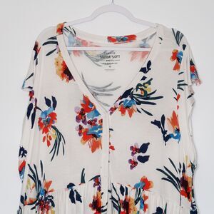 Torrid Super Soft Knit Size 4X Tiered Floral Multicolor Button Front Cap Sleeve