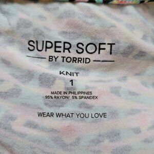 Super soft knit top from Torrid featuring a vibrant floral and animal print. Criss-cross V-neck detail adds a stylish touch. Size 1.