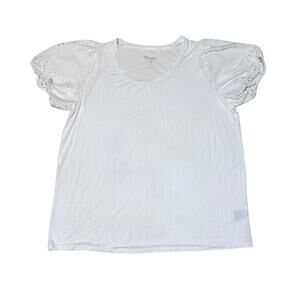 Torrid Super Soft Knit lightweight T-shirt with puffed laced embroidered eyelet style sleeves with scoop neck size 3 (3XL) white