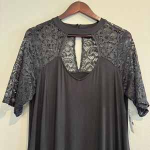 Torrid Super Soft Knits Black Lace Sleeve Midi Dress Stretch 1X 14-16
