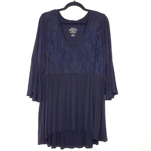 Torrid Super Soft Knits Lace Babydoll Top Size 2X Black Flare Sleeve Tunic Boho