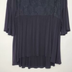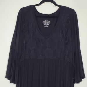 Torrid Super Soft Knits Lace Front Babydoll Top Size 2X Black Flare Sleeve Tunic.