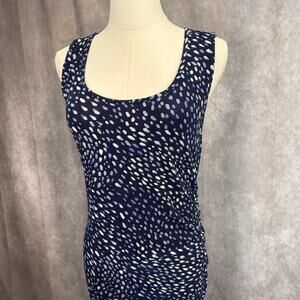 Keywords: Torrid maxi dress, Torrid size 1, Torrid Super Soft knit dress, plus size dress 14 16, navy blue sleeveless dress, ruched side dress, abstract print maxi