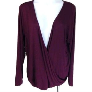 Item: Women's Wine Purple Surplice Wrap Top Super Soft Knits Long Sleeve