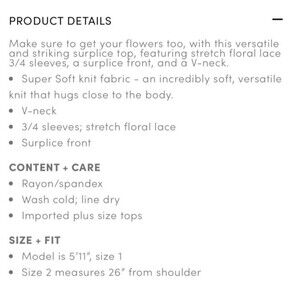 Description: Torrid Super Soft Lace Surplice Peplum Crop Top