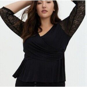 Torrid Super Soft Lace Surplice Peplum Crop Top - Size 3X