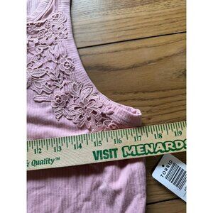 Torrid Super Soft Light Rib Knit Bleached Pink Tank Top Plus Sz 1X Lace Trim NWT