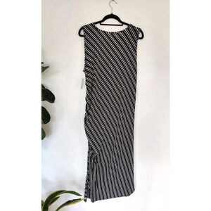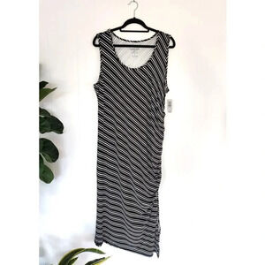 Torrid Super Soft Midi Dress Sz 2X Sleeveless Asymmetrical Striped Black White